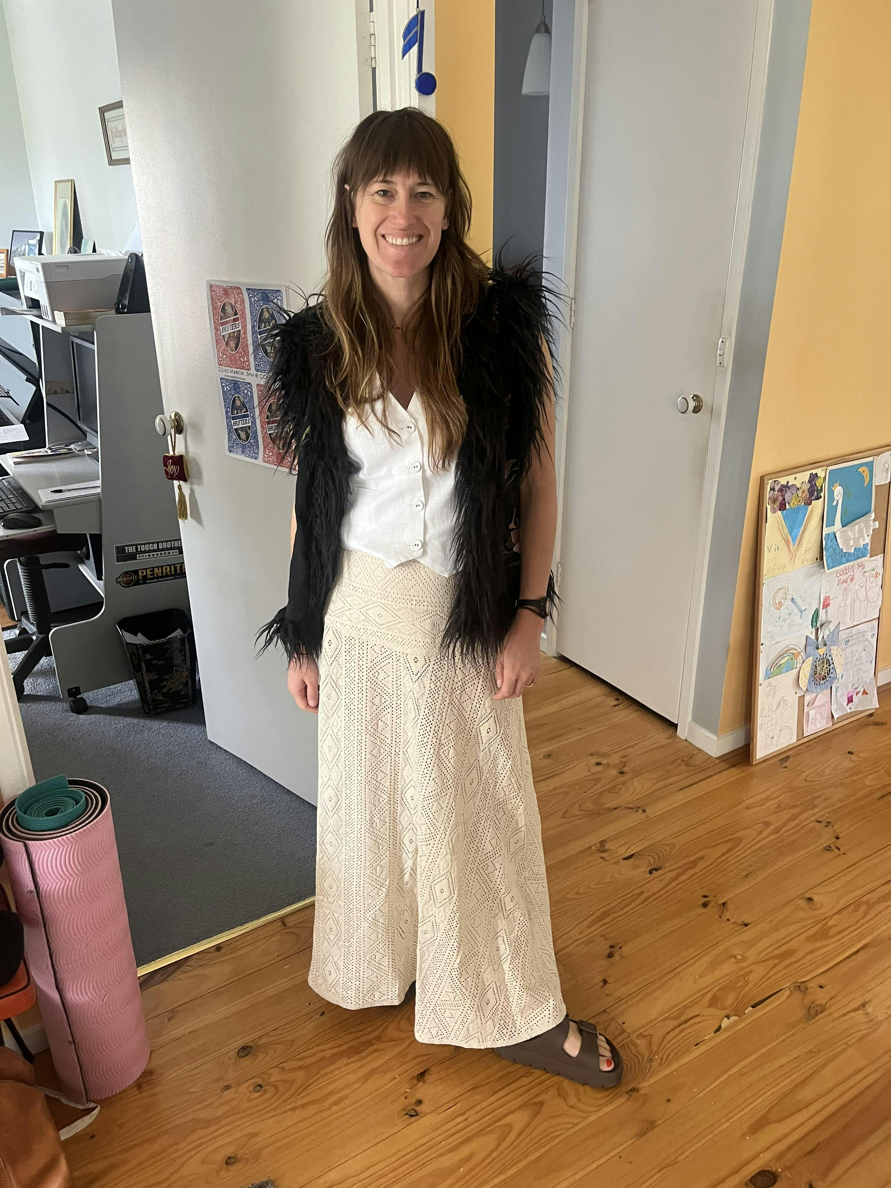Crisp white, linen-cotton blend. Tailored but easy, with clean lines and subtle shaping. Wear it open or buttoned, layered over bare skin or a vintage tee. Looks just as good with denim as it does walking barefoot on the lawn paired with your Harvest Haze maxi.